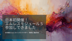 こんにちは!EHI認定エムレスインストラクター/施術士の樋渡です。 先日大阪でエムレス・モジュール5のセミナーが世界で初めて開催されたので参加してきました。 このセミナーはエムレスの創設メンバーの一人のセドリック・バーテリー氏が日本に来日し …