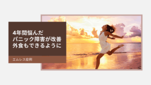 EHI認定エムレスインストラクター/施術士の樋渡です。 4年前にパニック障害を発症してから、外出や外食が苦手になってしまった方にエムレスのセッションをさせていただきました。 エムレスのセッション後の感想をシェアします。 同じようにパニック障 …