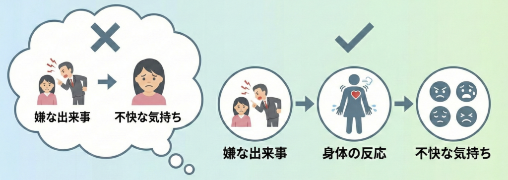 「嫌な出来事→身体の反応→不快な気持ち」