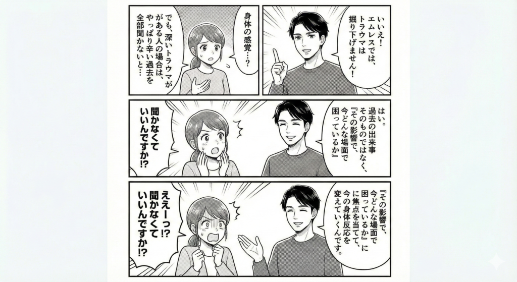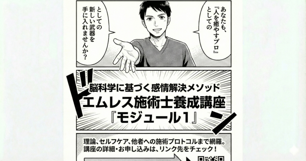 特に、多くのプロが驚かれる「過去のトラウマを詳しく聞く必要がない」という理由や、「なぜ施術のデモ動画を公開しないのか(=安全性の担保)」についても、その背景をお話ししています。