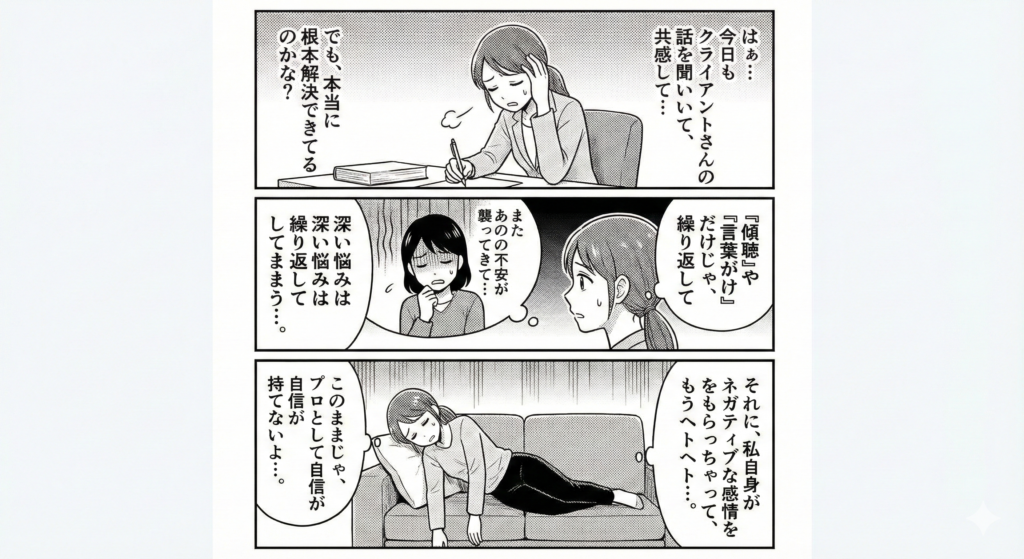 日々、クライアントの心に寄り添い、傾聴や共感を尽くしているあなたへ。 ふと、こんな「限界」を感じることはありませんか?