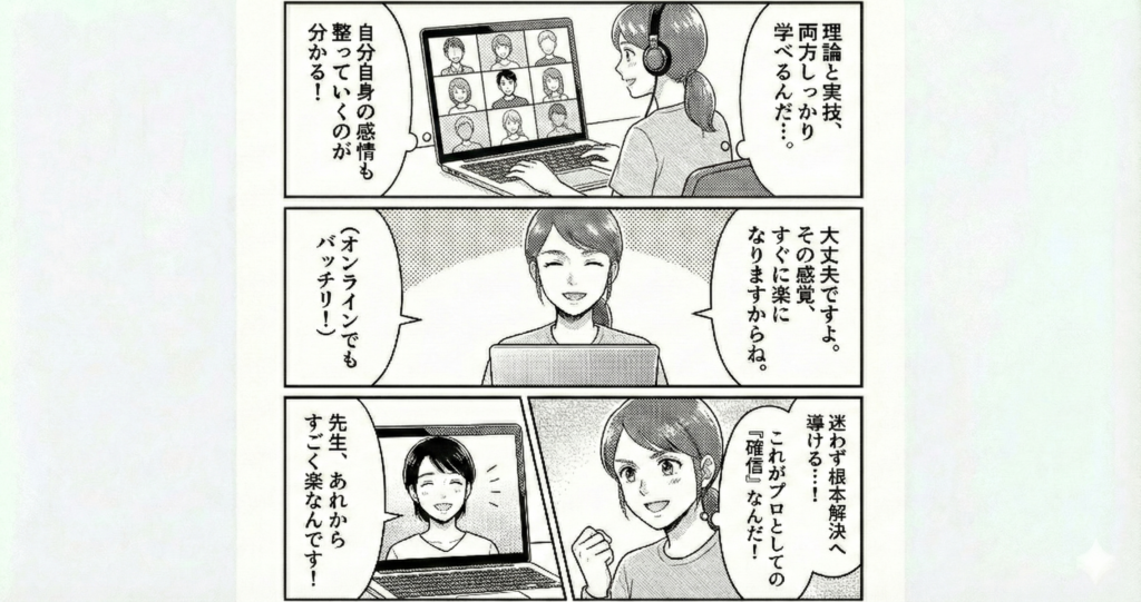 - 迷わず「根本解決」へと導ける自信がつきます。