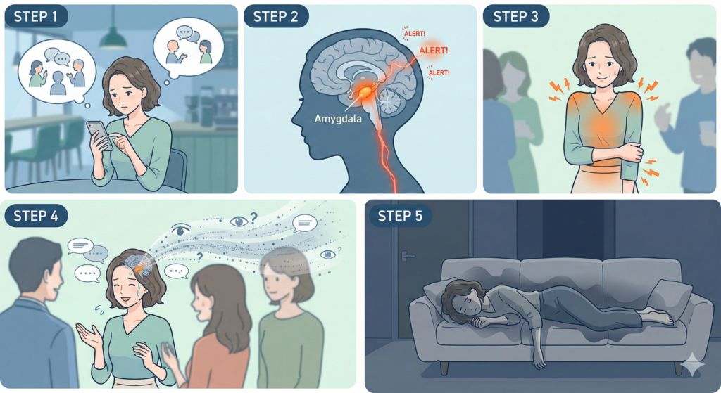 誰かを怒らせてしまったり、自分の発言で場が凍ったりした記憶がある——こういった経験が積み重なるたびに、脳と身体は「人の場は注意が必要だ」という記憶を強化していきます。
