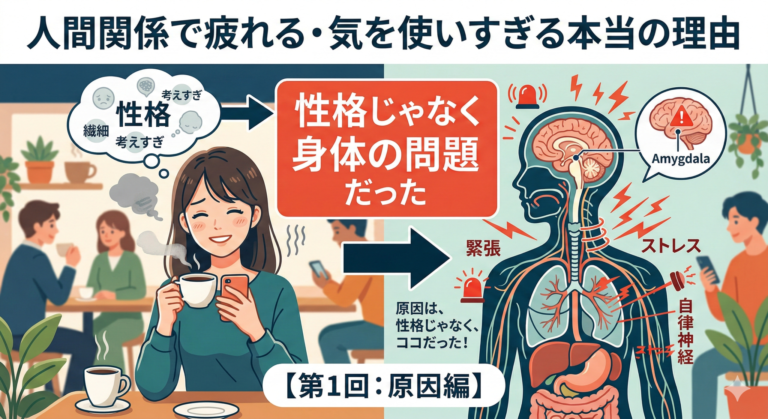 その結果、人と会うたびに身体が自動的に警戒モードに入るようになる。これが「人間関係で疲れやすい状態」の正体です。